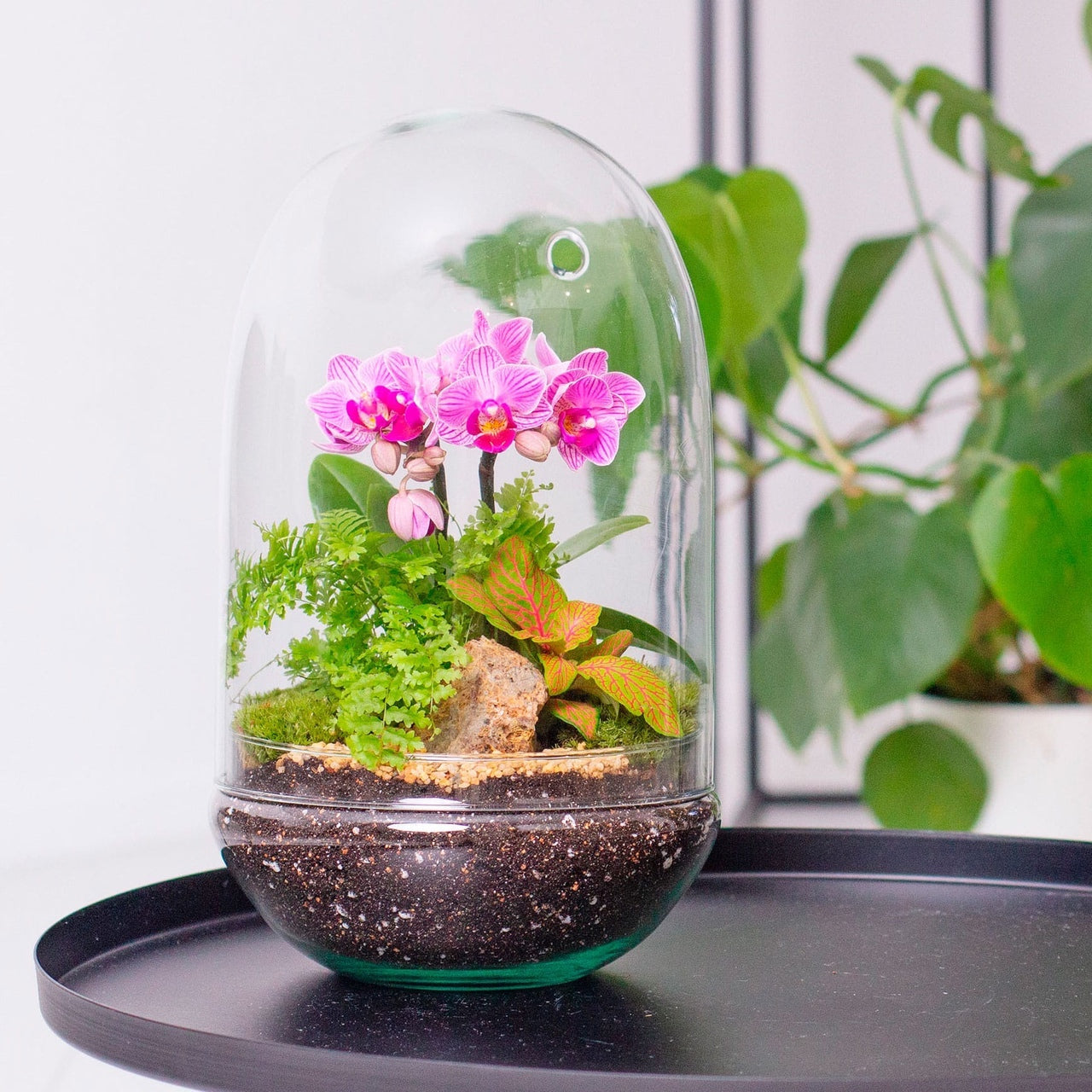 Closed terrariums only need watering once every 3–4 weeks, as they naturally recycle moisture. If you notice excess condensation, leave the lid open for a few hours to balance humidity.