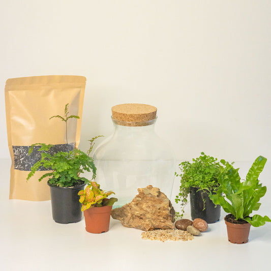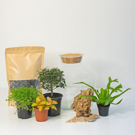 Each kit contains everything you need to create a thriving terrarium: