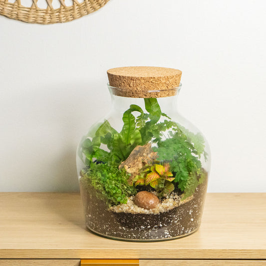 Terrariums are perfect for beginners and plant lovers alike, requiring no special skills or experience. Each kit includes all the essential components—carefully selected plants, nutrient-rich soil, decorative sand, and natural rocks—so you can easily create a thriving miniature ecosystem. With a step-by-step guide, assembling your terrarium is simple, making it a fun and rewarding experience for all.