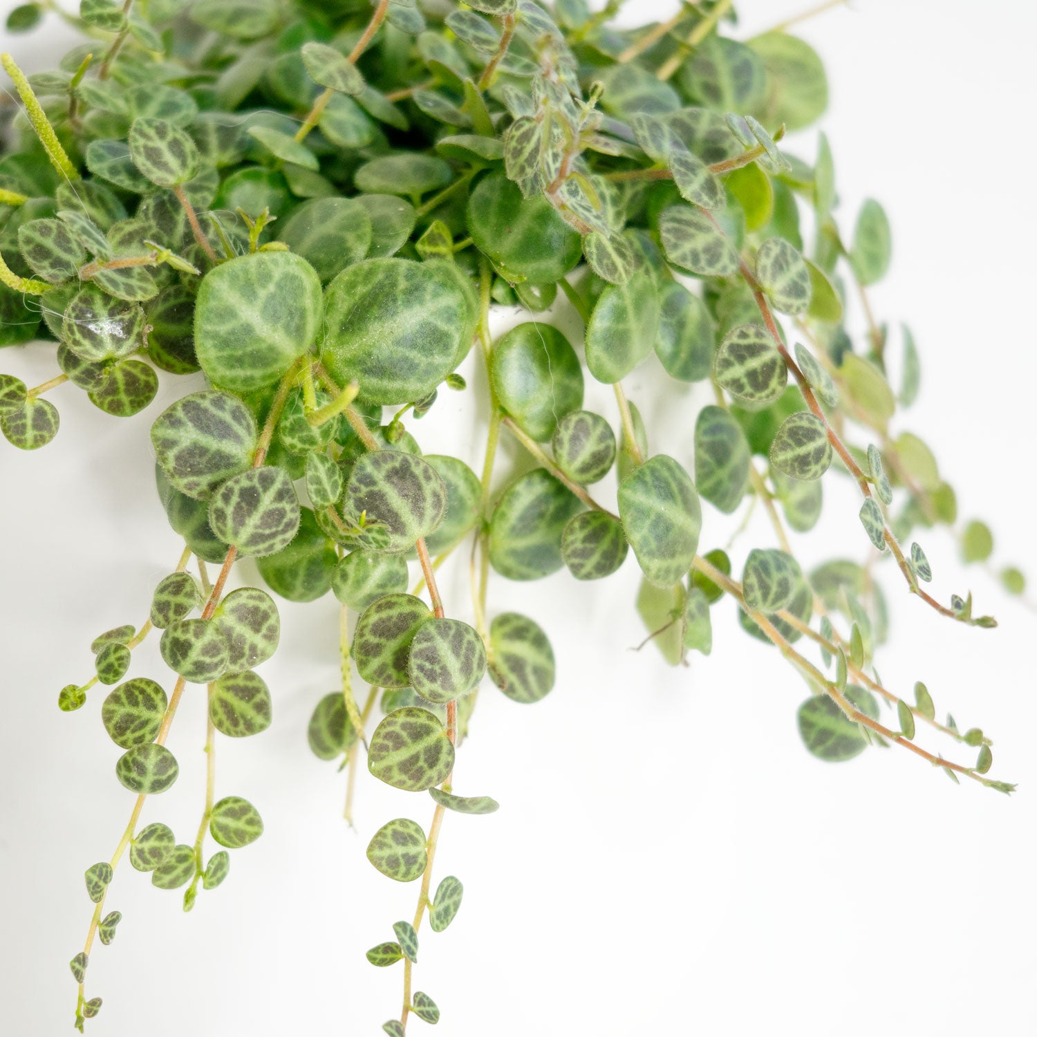The String of Turtles (Peperomia prostrata) is an enchanting trailing plant admired for its small, round leaves patterned like delicate turtle shells. Its unique foliage and gentle cascading growth make it a beautiful addition to shelves, hanging planters, or small indoor spaces needing a touch of charm. Locally grown and carefully acclimated, this plant is repotted in our premium 5-component soil mix to ensure strong roots, balanced hydration, and easy adaptation to your home.